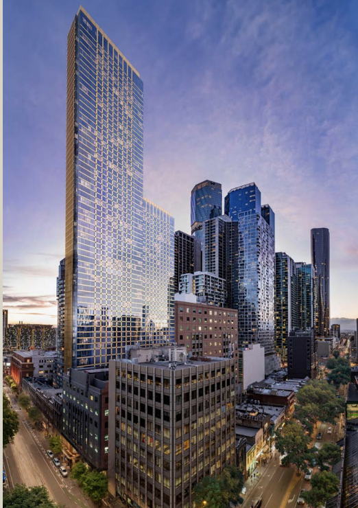• Rising from the historic Eliza Tinsley building, 640 Bourke Street is a 68-storey tower that seamlessly blends heritage charm with modern design.
